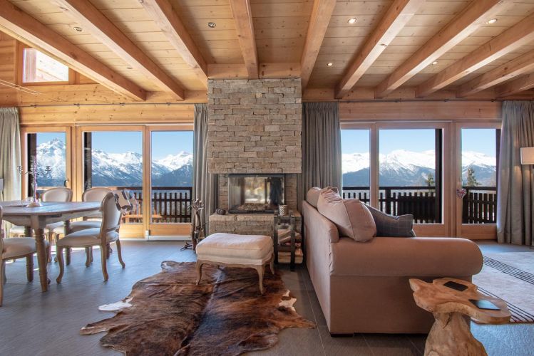 Situé au cœur des Alpes suisses à Veysonnaz, ce chalet de 180 m² vous offre une expérience unique avec un accès direct aux pistes des 4 Vallées.
